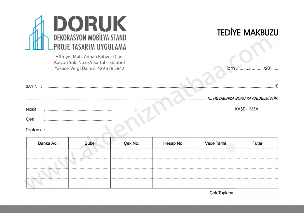 Kusursuz hizmet ve uygun fiyatlardan faydalanarak Tediye Makbuzu basımı yaptırmak istiyorsanız 0216 346 31 61 nolu telefonumuzdan bize ulaşabilirsiniz.